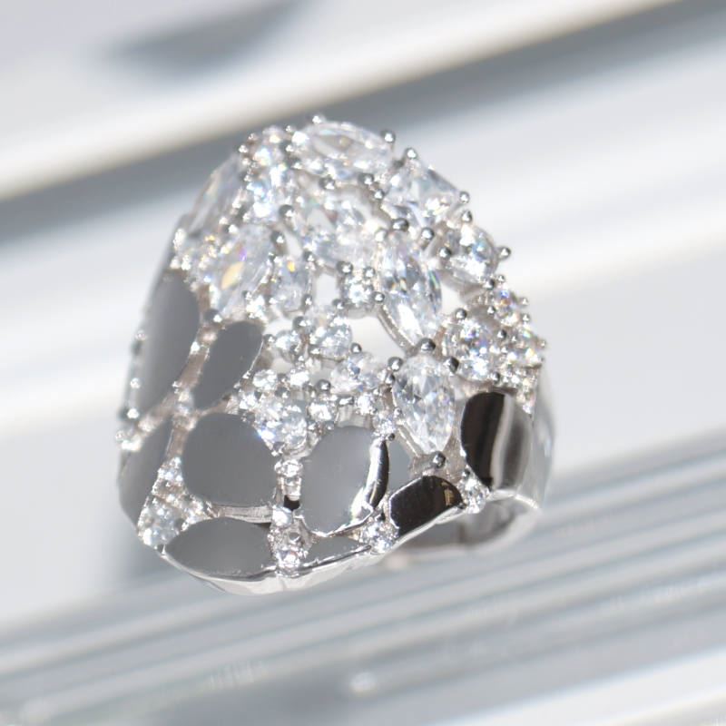 Bague en argent 925 rodhié et zircons. Taille ajustable.