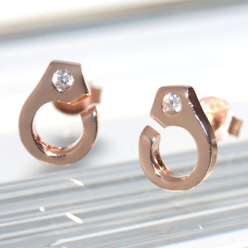 Boucles en argent 925 rodhié et zircons. Fermoir clou.