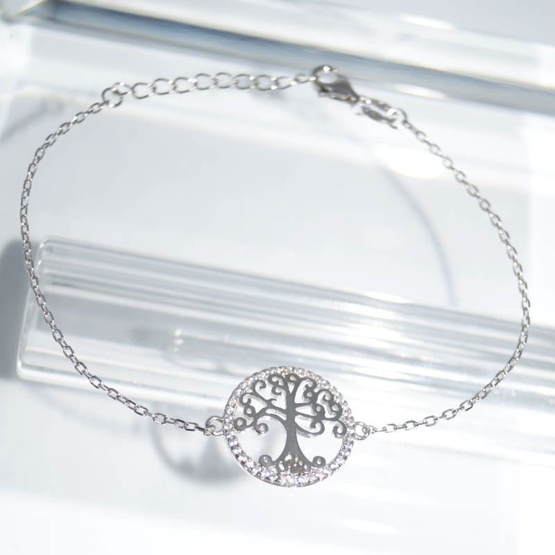 Ce bracelet délicat en argent 925 rhodié met en lumière un médaillon finement ajouré représentant l’arbre de vie, encerclé de zircons lumineux. Symbole intemporel de croissance, de protection et de connexion entre les éléments, il se porte comme un talisman chic et discret.
