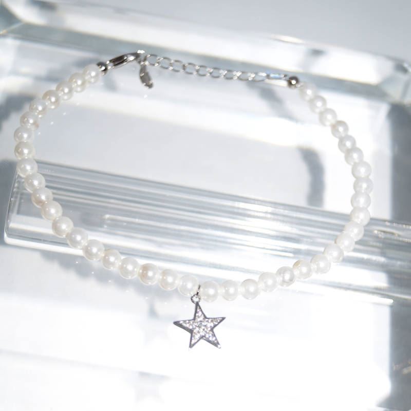 Mettez en valeur votre poignet avec notre Bracelet en Perles Naturelles avec Charm Étoile en Argent 925 et Zircons, et laissez-vous envoûter par son éclat subtil et son style intemporel.
