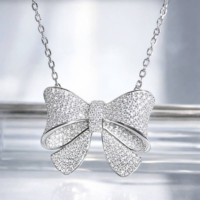 Ce collier en argent 925 révèle un nœud oversize sublimé par un pavage lumineux de zircons qui capte la lumière à chaque mouvement.