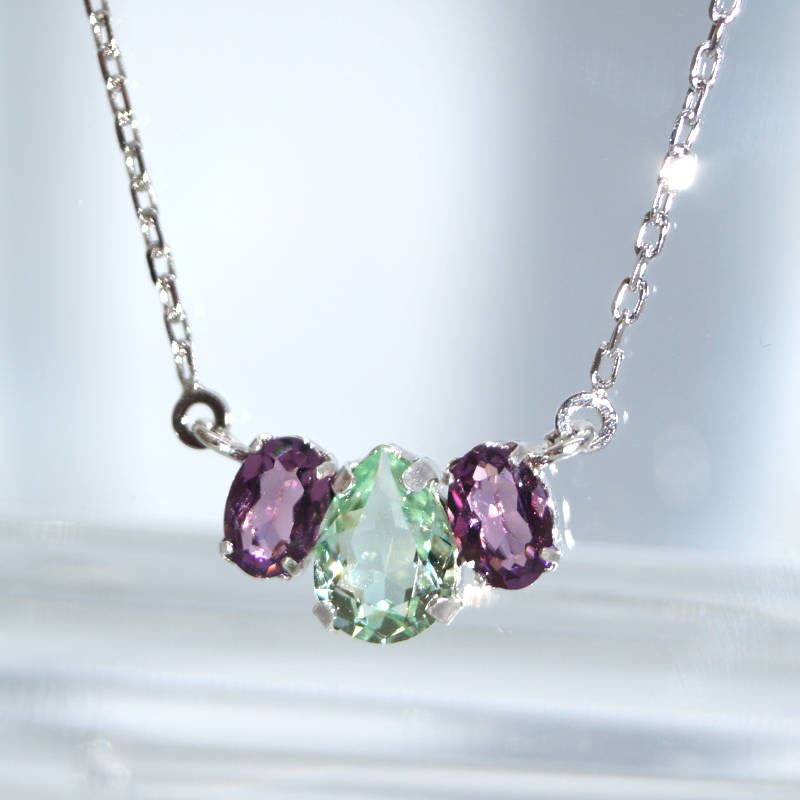 Laissez-vous séduire par la fraîcheur du Collier Trio Amandine Swarovski, une harmonie parfaite de cristaux verts et roses pour une élégance tendre.
