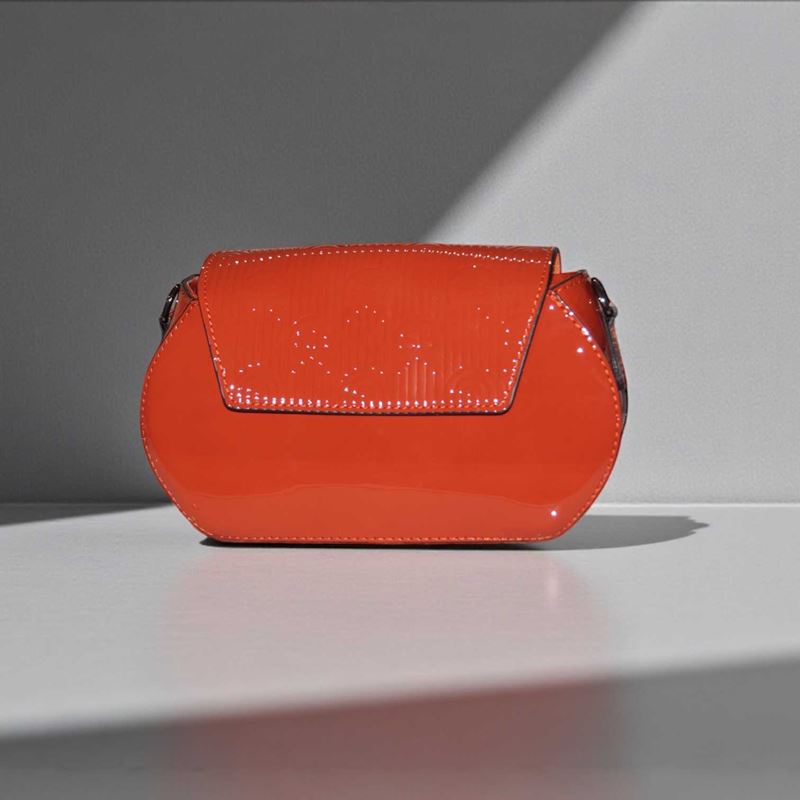 Le Sac Ines Vern Gem Cuivre attire immédiatement l’œil avec son cuir verni lumineux et son format arrondi ultra moderne.